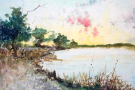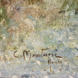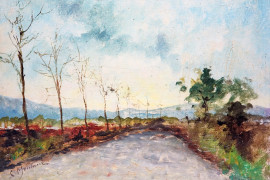 Scorcio lacustre e Viale alberato, due dipinti ad olio su tavola, cm 30x35,5, firmati C.Montani, (lievi difetti)