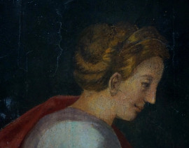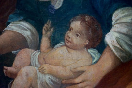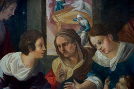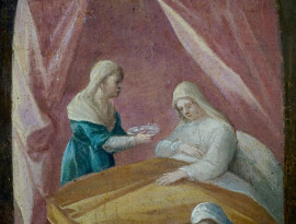 Scuola toscana/pittore manierista del XVI secolo, Nascita della Vergine, olio su tavola, cm 100x132, (cadute di colore)