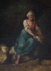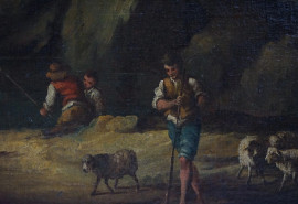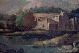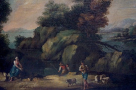 Scuola veneta del XVIII secolo, Paesaggio con figure, olio su tela, cm 67,5x97,5, entro cornice