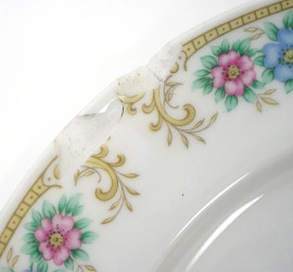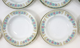 composto da zuppiera, tre vassoi da portata, 12 piatti fondi, 12 piatti piani, 12 piattini, tot. pz 40, (difetti)