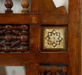 Specchiera araba in legno intagliato ed intarsiato, cm 97x58, XX secolo