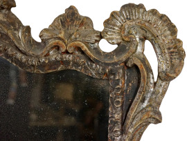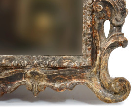 cornice intagliata e scolpita a volute, piedini a ricciolo, cm h 113x77, (difetti).