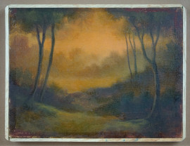 Paesaggio boschivo, olio su tela, cm 17,5x24, entro cornice