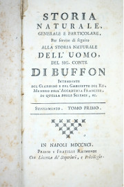 Storia naturale di De Buffon, 31 volumi, Napoli, 1787, (opera incompleta, mancanze).