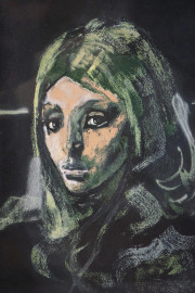 Ritratto di donna, multiplo su carta, cm 69x49, entro cornice