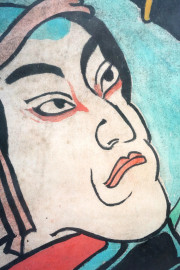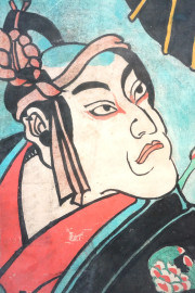 Sukeroku Hanakawado, tecnica mista su carta, cm 19x13,5, Giappone, XIX secolo, entro cornice, (difetti).