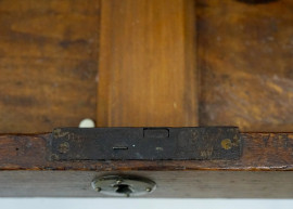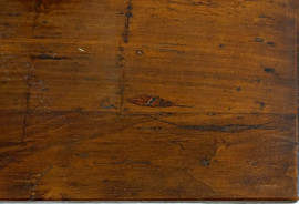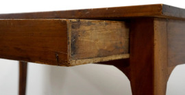 Tavolo scrittoio in noce, XIX secolo, piano rettangolare poggiante su quattro gambe mosse, cm 71x125x59, (difetti).