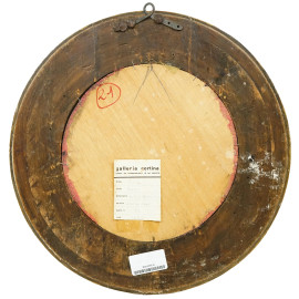 Negro, assemblage su tavola, diametro cm 28, entro cornice