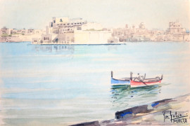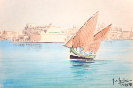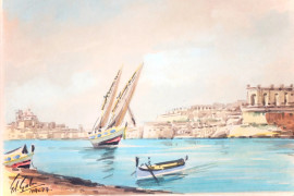 Tre acquarelli figgiguranti Malta, cm 19x24,5 caduano, firmati e datati, entro cornice