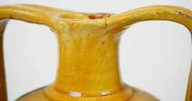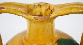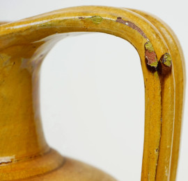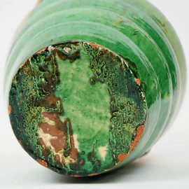 Vaso biansato in terracotta smaltata verde e gialla, cm h 30, (lievi difetti)