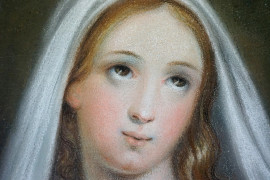 Vergine, tecnica mista su cartone, cm 27x22, firmato a tergo, entro cornice.