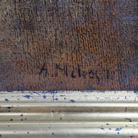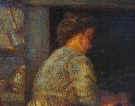 Al focolare, olio su cartone, cm 34,5x47, firmato A.Milesi, entro cornice.