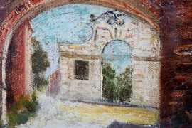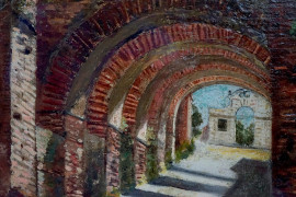 Archi del Clivo di Scauro, olio su tela applicata su cartone, cm 32x33, firmato, entro cornice.