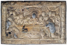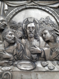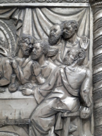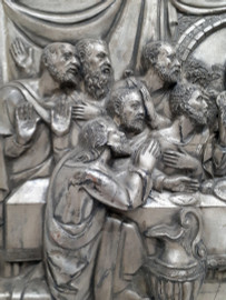 Artista della fine dell’Ottocento, Ultima Cena, raffinato altorilievo a sbalzo in metallo argentato, cm 35x52