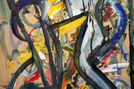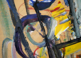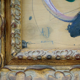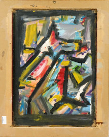 Astratto, tecnica mista su compensato, dipinto double face, cm 86x60, siglato in basso a sinistra, entro cornice.