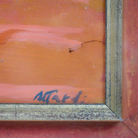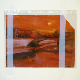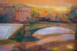 Tramonto sul Tevere, olio su tela, cm 47x58, entro cornice.