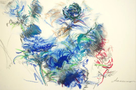 Fiori, tecnica mista su carta, cm 46x34, entro cornice
