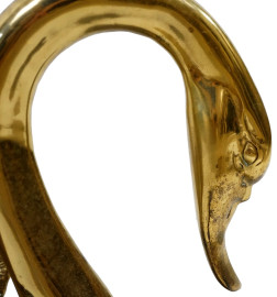 Base per tavolo da salotto in metallo dorato a forma di cigno, poggiante su supporto circolare modanato in marmo nero, XX secolo, cm h 40x40.