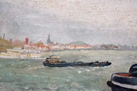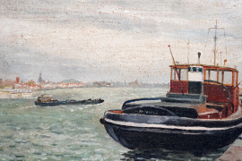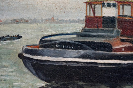 Battello a Venezia, olio su tela riportata su compensato, cm 20x30, firma a tergo, entro cornice.