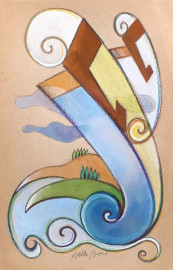 Aeropittura, tecnica mista su carta, cm 19x12, firmato, entro cornice.