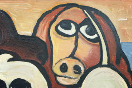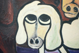 Cani, olio su compensato, cm 40x50, XX secolo, (lieve difetto ad un angolo).