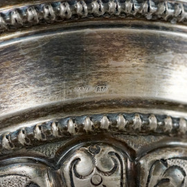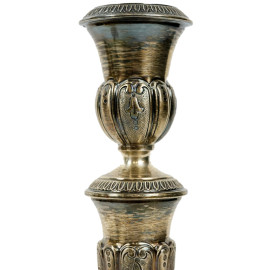 Coppia di candelieri in argento con fusto rastremato finemente inciso, Vercelli, seconda metà XX secolo, cm h 29, peso gr. 620 circa.