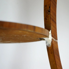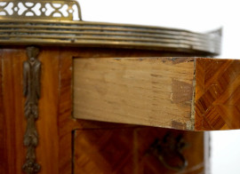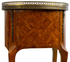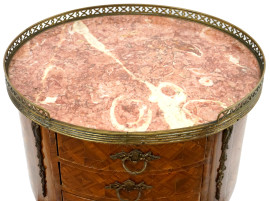 Coppia di comodini in legno impiallacciato a marquetérie, Francia, XX secolo, cm h 72, (difetti, un restauro su una gamba)