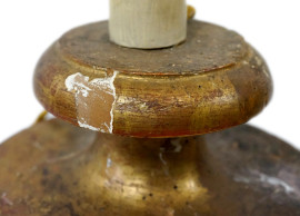 Coppia di vasi portapalme trasformati a lampada in legno intagliato e dorato, XIX secolo, cm h 85, (difetti).