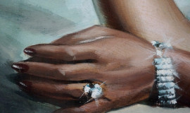 Charme, tempera su cartoncino, cm 21x45 ca., entro cornice