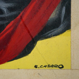 Il laccio rosso, tempera su cartoncino, cm 50x34,5, presenti iscrizioni sul bordo in basso