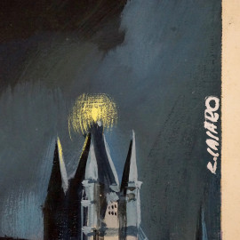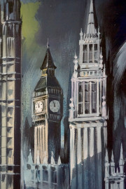 Omicidio a Westminister, tempera su cartoncino, cm 55x40, (lievi difetti)