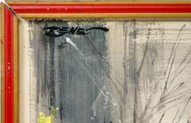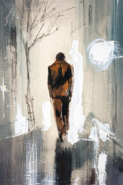 Uomo nella notte, tecnica mista su cartoncino, cm 34,5x25, entro cornice.