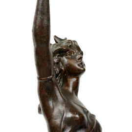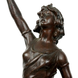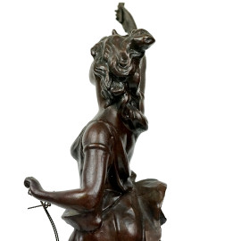 Ebe e l'aquila, scultura déco in metallo brunito, cm h 60, base in legno, (difetti, lucerna mancante).