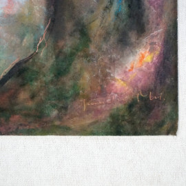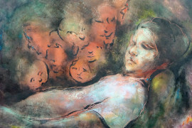 Fanciulla sdraiata, tecnica mista su tela, cm 23x29, firmato, entro cornice.