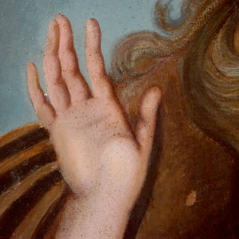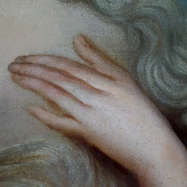 Figura femminile allegorica, olio su tela, cm 87x70, fine XVIII secolo, (difetti e restauri)