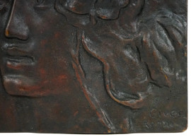 Figure, placca in bronzo, cm 16x28, firmata Cives.