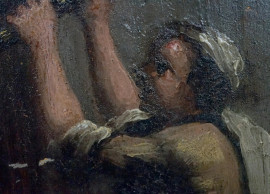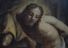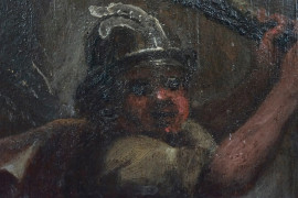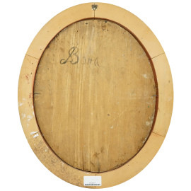 Flagellazione, olio su tavola ad assetto ovale, cm 49,5x39,5, firmato a tergo, entro cornice.