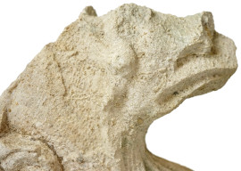 Frammento di garguglia in pietra scolpita, XIII-XIV secolo, cm 21x28x12 circa, (difetti)