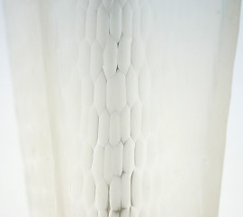 Gino Cenedese (1907-1973), lampada da tavolo anni '70 in vetro satinato di Murano, fusto ad obelisco rovesciato, cappello recante firma incussa del mastro vetraio, cm h 57.