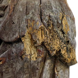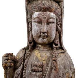 Guanyin, scultura in legno intagliato e argentato, arte orientale, XIX-XX secolo, cm h 139, (difetti).