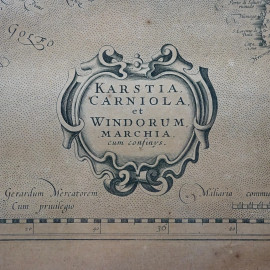 Karstia, Carniola et Windorum Marchia cum confinys, incisione, XVII secolo, cm 46.5x56, entro cornice, (difetti sulla carta)