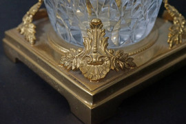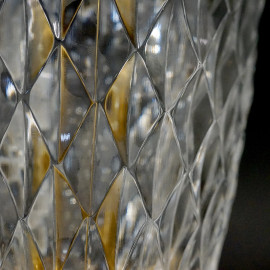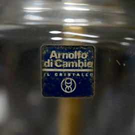 Lampada da tavolo in cristallo controtagliato e metallo dorato, XX secolo, recante etichetta adesiva Arnolfo di Cambio, cm h 48.