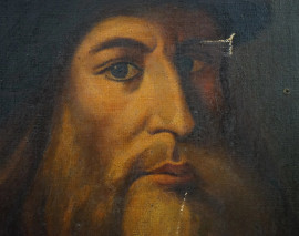 Leonardo da Vinci, olio su tela, cm 56x39, XX secolo, entro cornice, (difetti sulla tela)