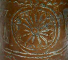 Lotto composto da quattro oggetti diversi in rame e metallo argentato, alt max cm 43,5, XX secolo, (difetti).