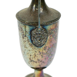 Lotto composto da tre coppe ed un vasetto in argento e metallo argentato, alt. max cm 36, XX secolo, (difetti).