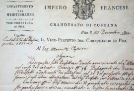 Lotto composto da tre documenti del XVIII e XIX secolo, misure max cm 52x41,5, entro cornici, (macchie sulla carta)