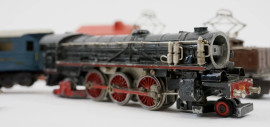 Lotto composto da vari modellini diversi di trenini, vetture e locomotive da collezione, entro casse in legno, (difetti, piccole parti mancanti).