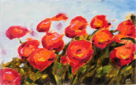 Lotto di quattro dipinti raffiguranti soggetti diversi, olio su cartone, cm 24x16.
