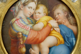 Madonna della seggiola, miniatura ad assetto tondo, diam. 12.5, XIX secolo, entro cornice.