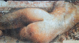 Nudo femminile, tecnica mista su carta, cm 16,5x61,5, entro cornice.